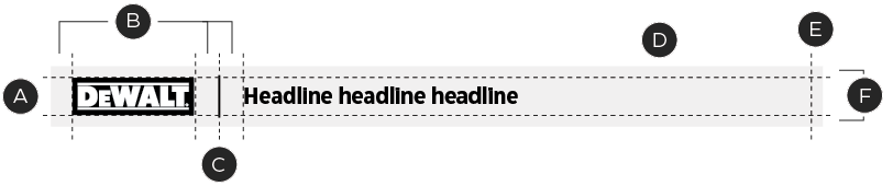 In some instances, logos with limited widths may appear in combination with short headlines/taglines. Due to the flexible zones, this can result in a disproportionate amount of clear space on the righthand side of the header. To combat this occurrence, a secondary copy size option is available, but can only be used when meeting certain criteria.