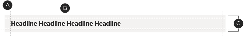 - There is a minimum of 0p6 space between the last character in the headline and the right edge of the header.