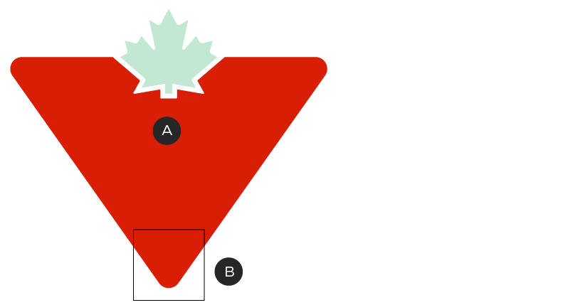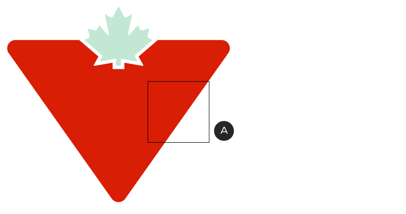 The Corner of the Triangle Element is created by cropping the bottom corner of the Canadian Tire Brandmark, making it a unique and ownable element that can be used across all brand touchpoints.