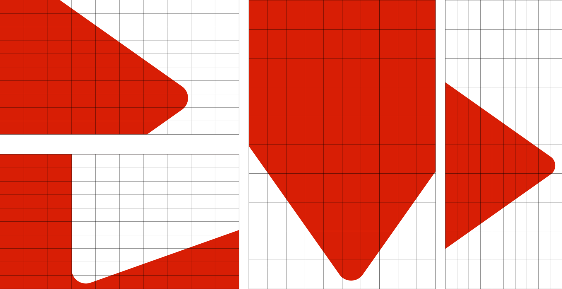 Secondary compositions are for use in layouts where the primary compositions don't provide enough flexibility. This can include very small layouts, like digital display banners; or narrow layouts, like interior transit ads or blade flags. In these situations, use a closely-cropped version of the Triangle to create space for image and copy and to retain the bold nature of our branding. In these compositions, the Triangle should take up 80–95% of the available layout space. Using a 10X10 grid can be helpful when you’re trying to determine how much space is being used but is not strictly necessary.