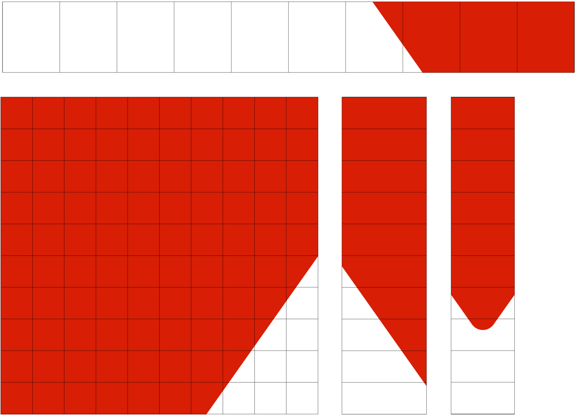 Examples of Triangle placements in secondary compositions, using the 10X10 grid.