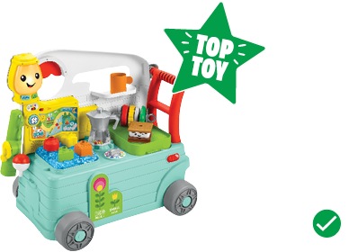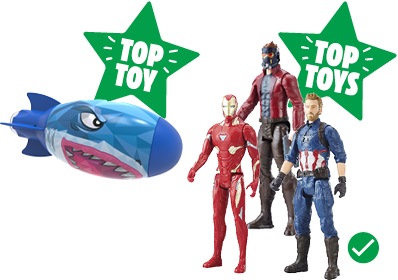 The Top Toys and Our Top Toys Badges also have a variation that includes "Featuring". These variations are only available in plural and is meant to be used as a general call out to inform customers to look for the specific uses of the Top Toy(s).