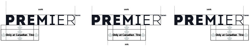 The horizontal variation uses a slightly different measurement of space in the standard and Micro versions brand endorsements. Both break the 0.5 maple leaf spacing rule and right align the text to the Brandmark. Due to the size of the text and its relationship with the Brandmark, the micro logo requires additional spacing. Both variants uses a two-leaf clear space to its left.