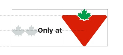 Only at, Available at and Now at are brand endorsement lockups consisting of a typographic element and the CT Brandmark. The typography uses CT Eastman Bold Grotesque and its size is determined by the width of the Triangle.