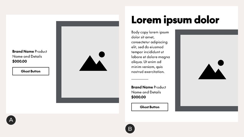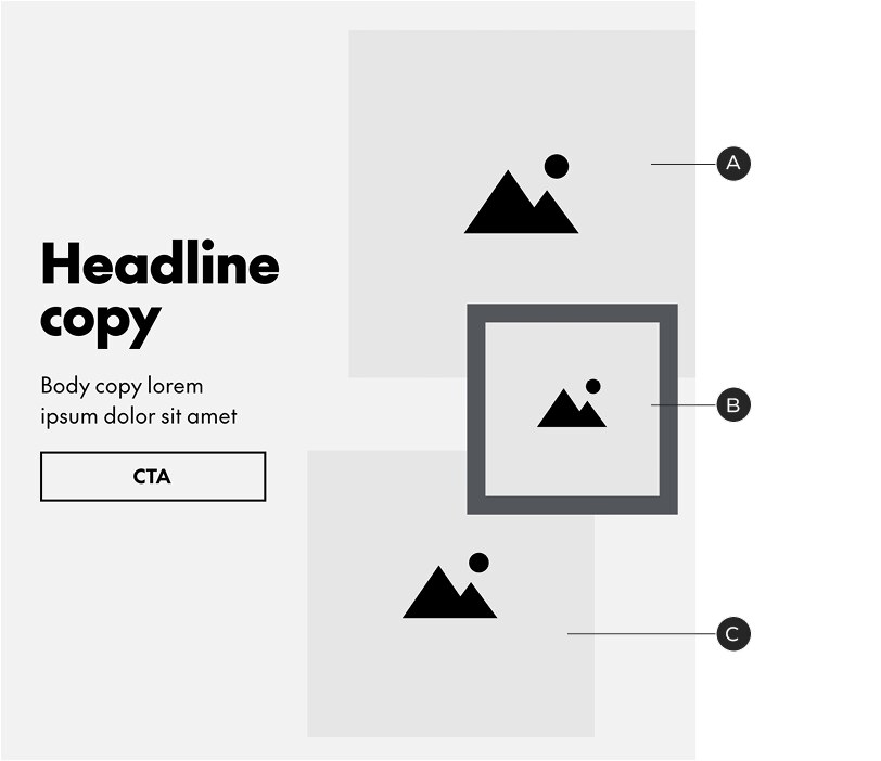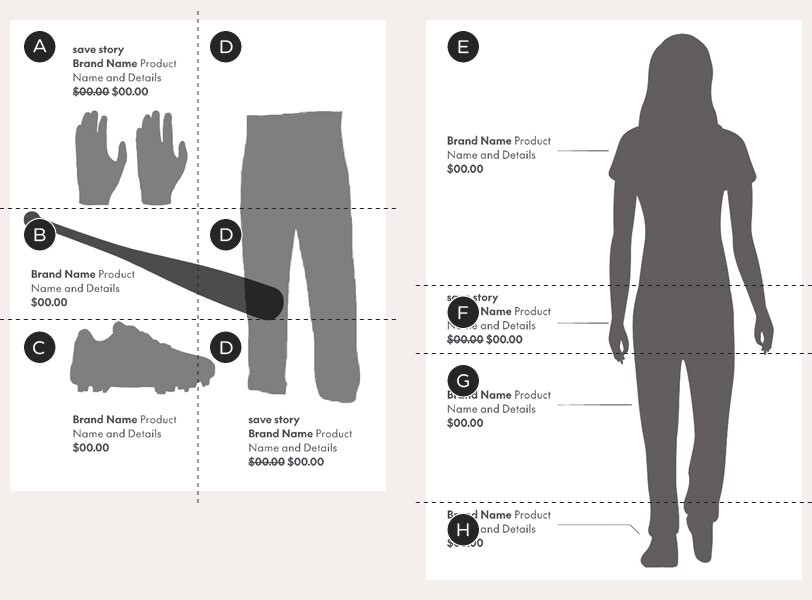 B – A third full-bleed image or a SKU shot can be placed inside this box (images may also protrude from the frame)