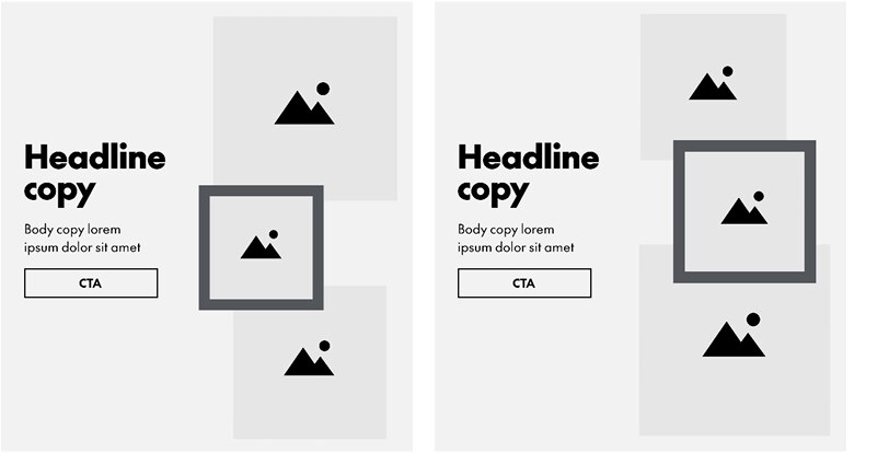 A, C – Crop full-bleed photography inside these boxes. Images may protrude from the boxes