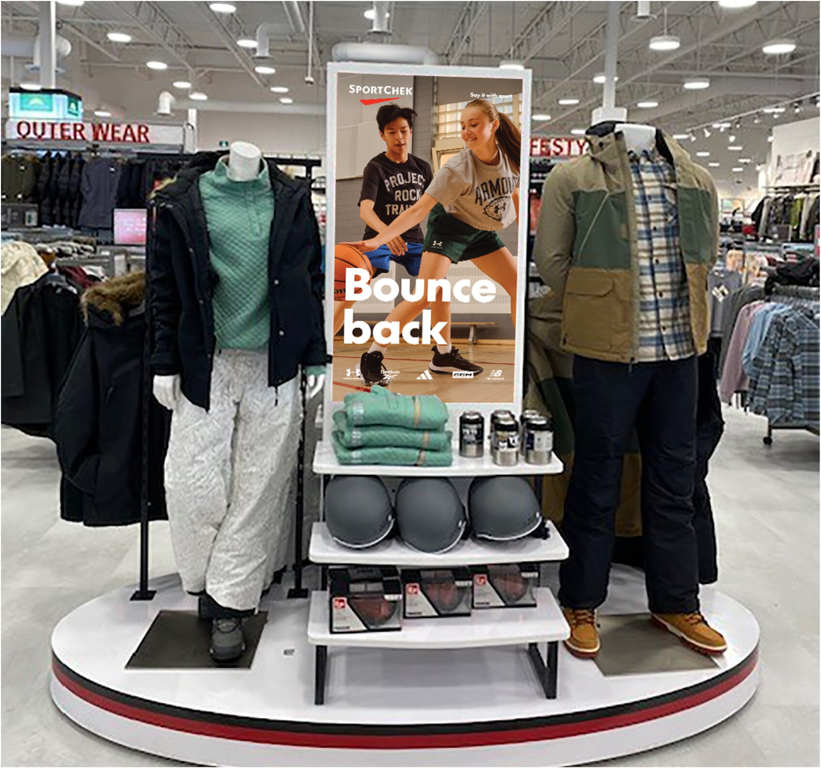 D – Tagline is 1/2 height of Sport Chek wordmark. It should be aligned to the wordmark's baseline and right aligned to the layout