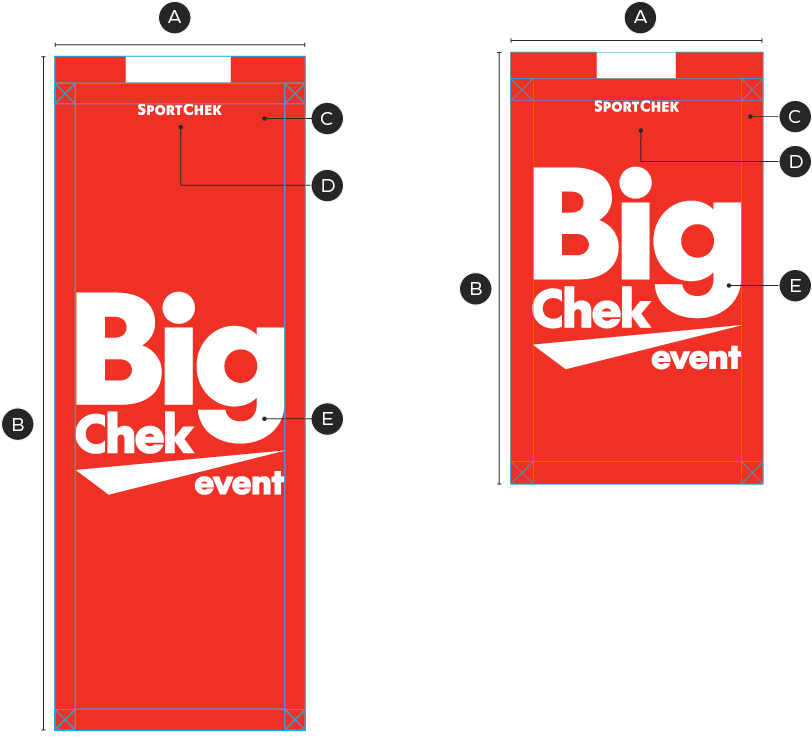 D – Sport Chek wordmark is 1/3 width of the shorter side (A)