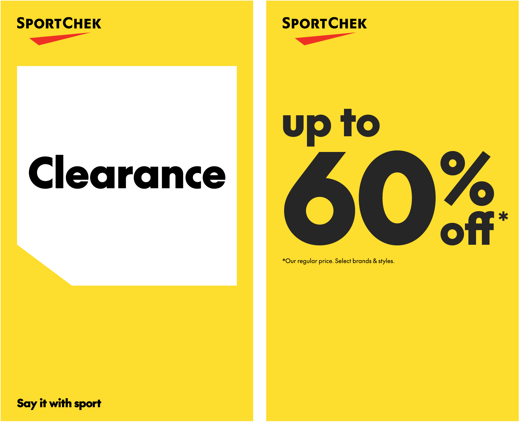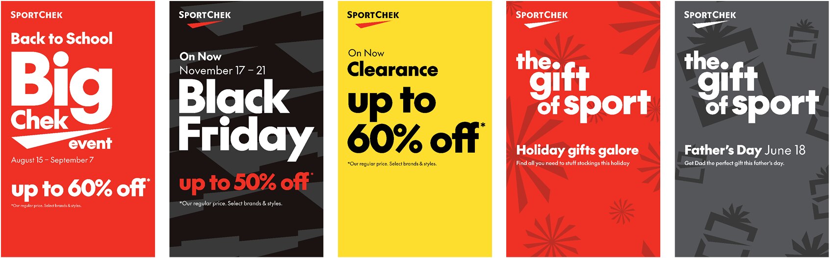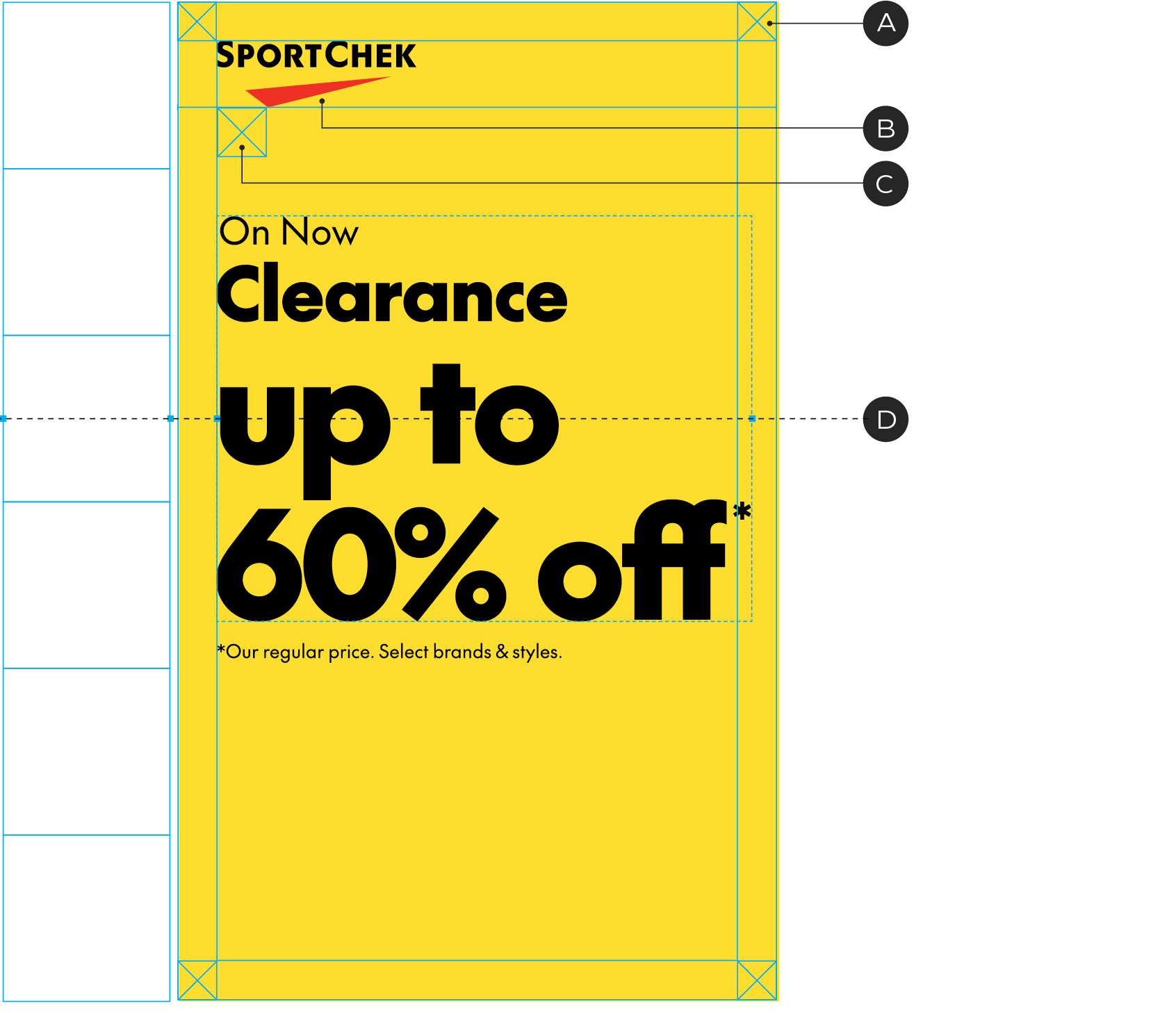 E – Tagline is aligned to the lower left corner of the layout and matches the width of the Sport Chek logo