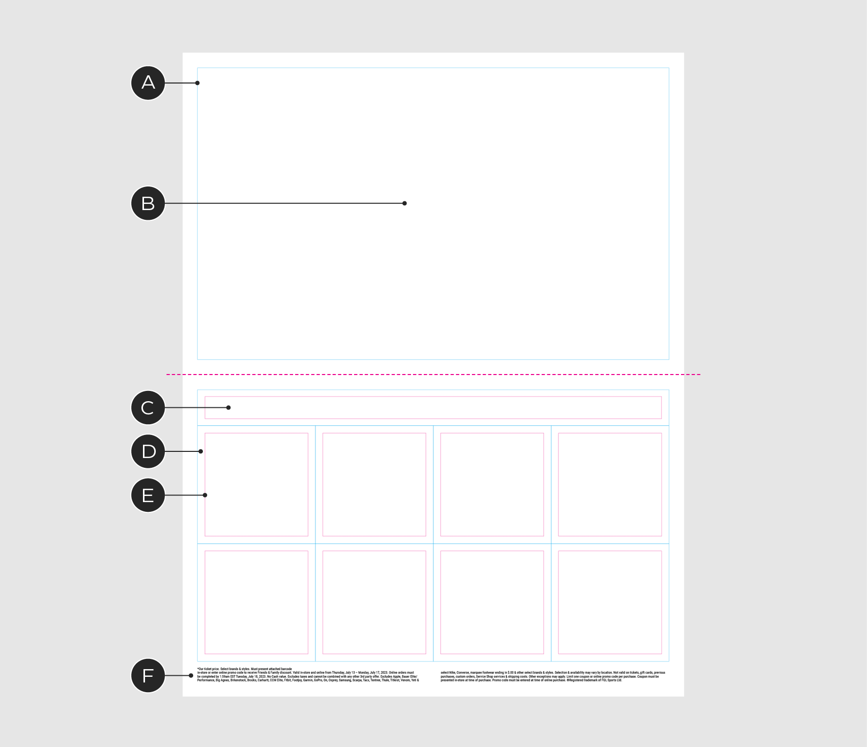 In some situations the overuse of the SKU rotation and cropping can make a grid layout feel too busy and distracting. In these situations standard gridded SKU placements can be used with occasional rotated treatments to add energy and excitement.