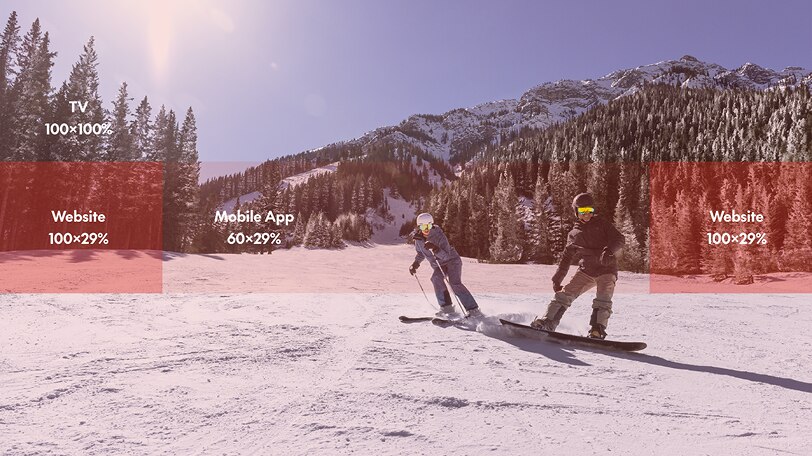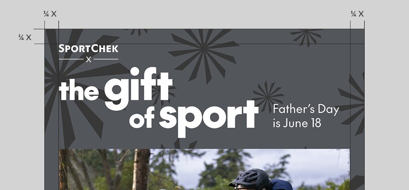 Always place the Brandmark in the top-left corner of the image, using the standard clear space requirements: 1/4 of the Brandmark's width from both the top and bottom edges