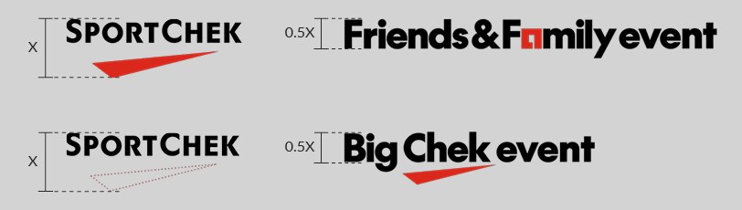 Size your lockups by adjusting the height of their capital letters to 50% the height of the full Brandmark. If you are using a separated (type-only) Brandmark, pretend that the Chek is still there when you adjust the size of your lockup