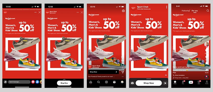 Groups of logos, layouts combining image and copy, or layered images don’t tend to do well with some interfaces, particularly TikTok. Simple is usually best.