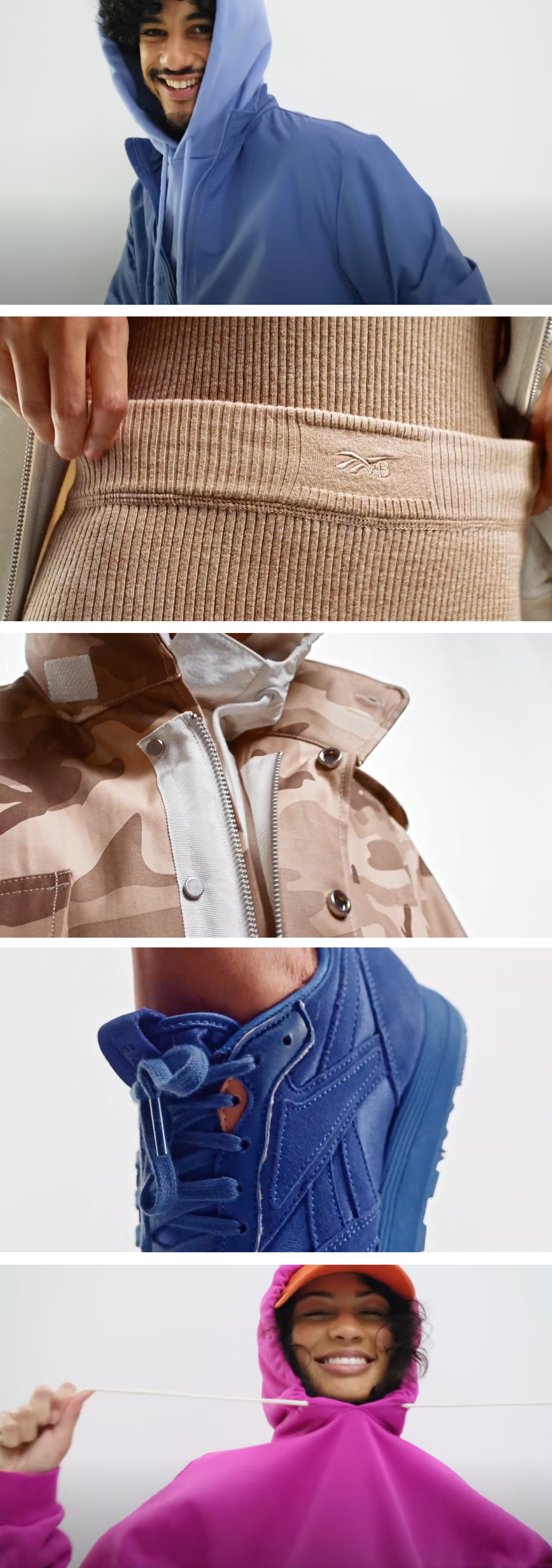 The primary purpose of Seasonal Moving Images is to capture the natural movement of talent wearing product, and/or utilizing gear while participating in a seasonal sport or activity. Whether featuring one talent or a group interacting with each other, actions should focus on capturing merch with the intention of use and highlighting any seasonal significance.