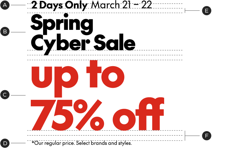 Our Cyber Sale event lockups have 2 orientations in order to best fit the needs of different channels. Use whichever orientation fits the layout best.