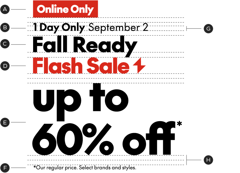 Level 2 events are mid-level retail events occuring once or twice per year. These events have more focus on the save story and less emphasis on the event name. Flash sales run more frequently and need the ability to feel fresh between events.